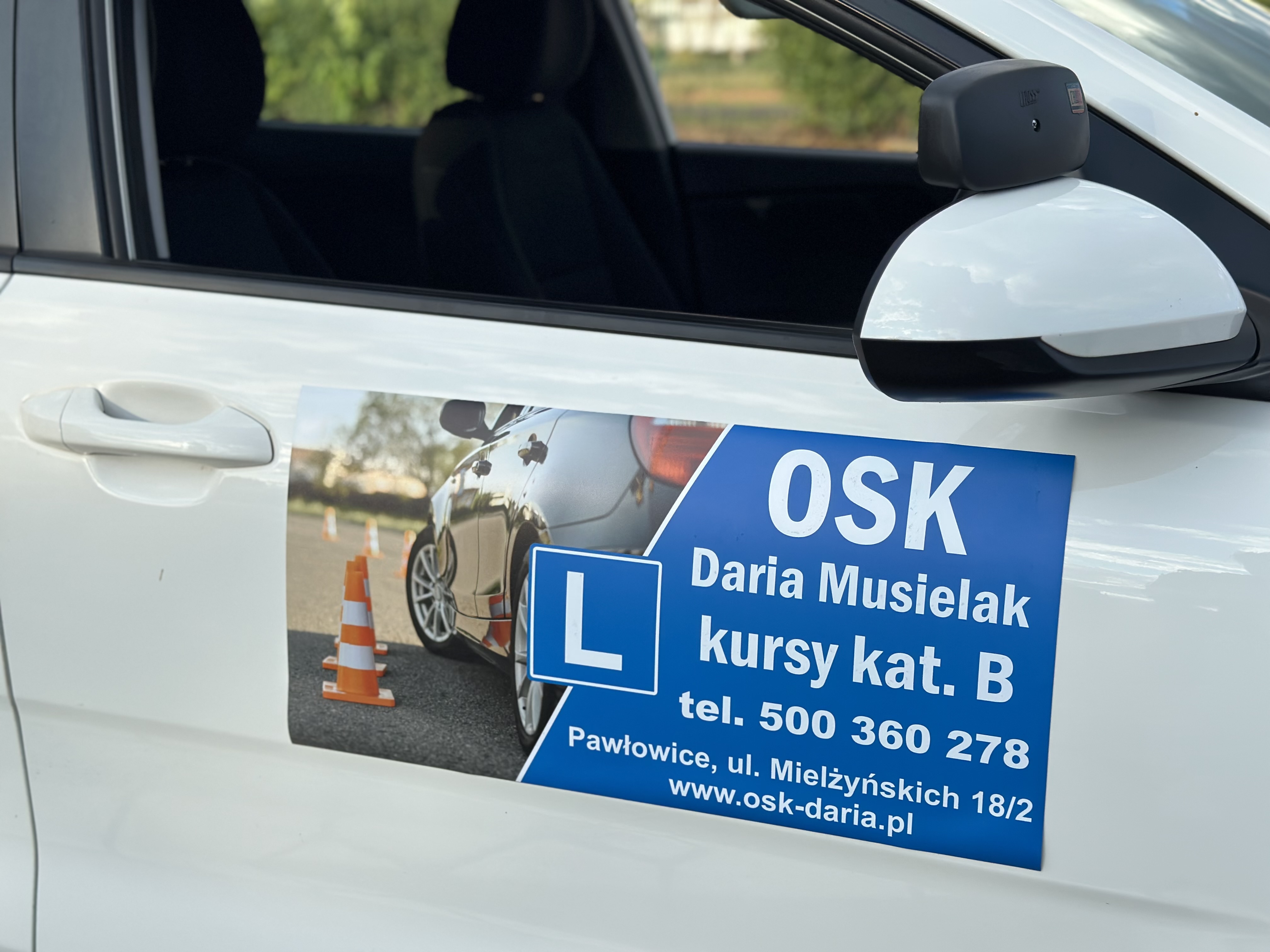 - plac manewrowy oraz samochód taki jak na egzaminie,